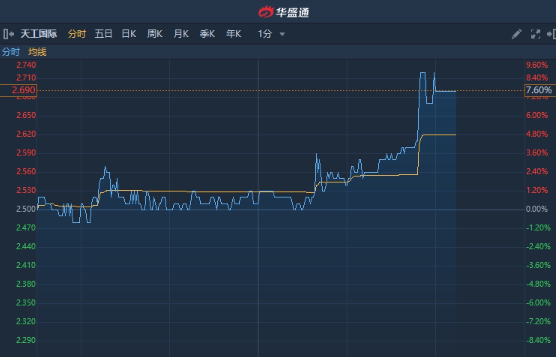 智通财经APP获悉,天工国际(00826)近日获纳入恒生综合指数。该股尾盘快速上扬,截至15时12分,涨7.6%,报价2.69港元,成交额3992万。