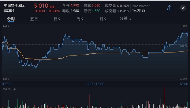 截至今日收盘,中国软件国际涨0.6%,报5.01港元。