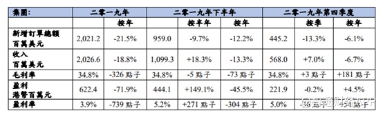 另外,受2019贯穿全年的中美贸易摩擦影响,集团第四季度新增订单总额为4.5亿美元,环比减少13.3%,较上年同期减少6.3%。2019年年底的未完成订单总额为6.5亿美元,较前年年底减少0.7%。