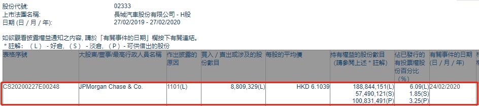 智通财经APP获悉,联交所最新资料显示,2月24日,摩根大通增持长城汽车(02333)880.9329万股,每股作价6.1039港元,涉及总金额约为5377.13万港元。增持后最新持股数目约为1.89亿股,最新持股比例6.09%。