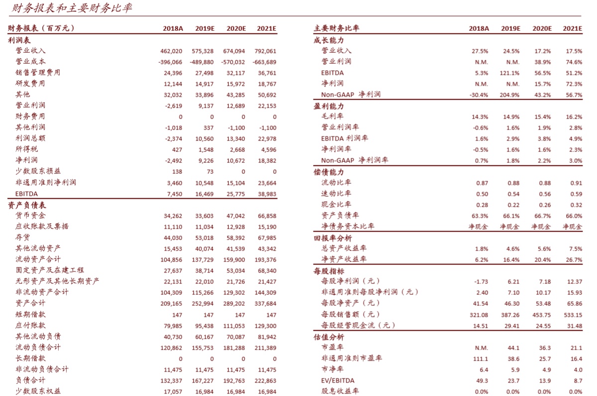 我们下调20年收入预测1%,调整19/20年非通用准则净利润-1%/1%,主要反映以上提到的趋势,同时引入21年收入预测同比增长17.5%。维持跑赢行业,考虑到利润率改善,对SOTP估值进行相应调整,上调目标价15%至46美元,对应31倍2020年非通用准则市盈率,较当前股价存在18%上行空间;对应京东商城2021年调整后净利润率(不计未分配项目)假设3%(此前为2.9%)。当前公司股价对应26倍2020年非通用准则市盈率。