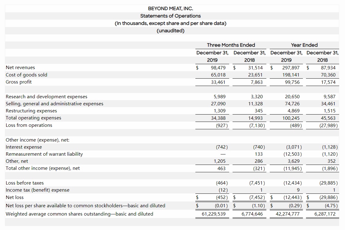 智通财经APP获悉,2月27日美股盘后,植物合成肉公司Beyond Meat(BYND.US)公布了2019年第四季度及全年财报。