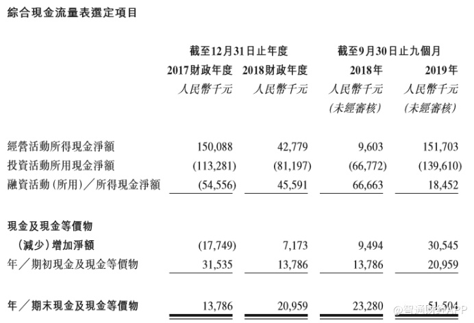 2019年前九月,公司经营活动所得现金净额由2018前九月的960万大增至1.52亿。而投资活动所用现金净额亦由6677万增长至1.40亿。