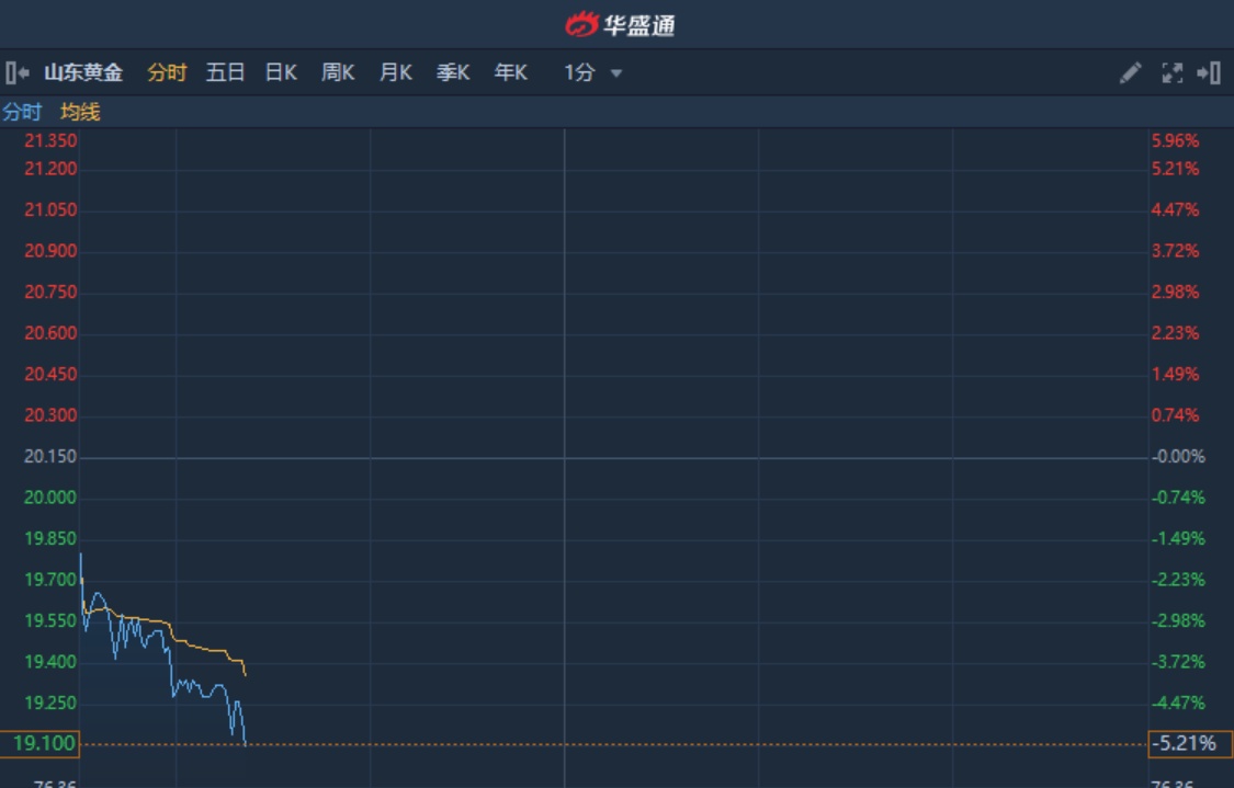 港股异动︱国际金价高位盘整 黄金板块随市下行 山东黄金(01787)续跌逾5%