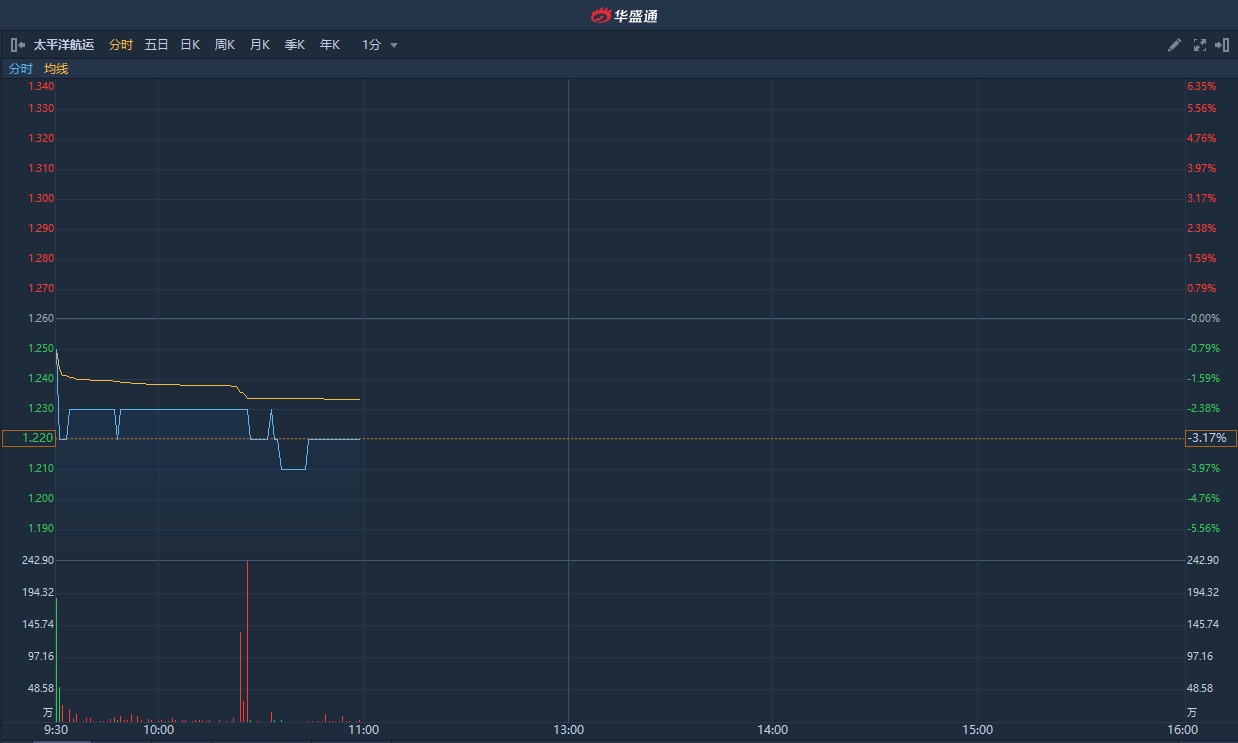 智通财经APP获悉,太平洋航运(02343)公布2019年度业绩,期内公司营业额15.86亿美元,同比基本持平;股东应占溢利2510万美元,同比减少65.3%。该股盘中低见1.21港元,创近三年新低。截至发稿,跌3.17%,报1.22港元,成交额1022.44万港元。