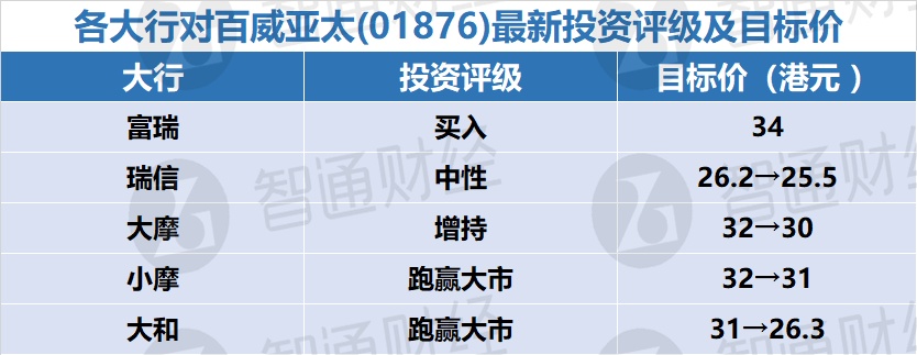 二、各大行对百威亚太(01876)最新投资评级及目标价