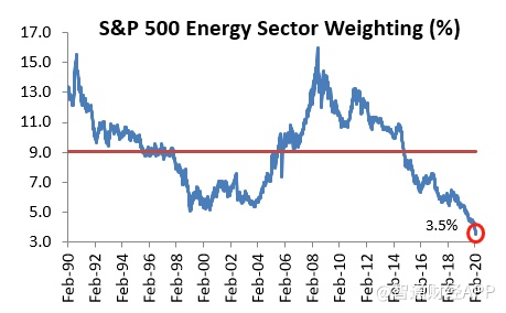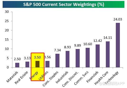 在标普500指数中,能源板块的权重已经降至3.5%,使得该板块成为了标普500指数中第三小的板块。领先的三大板块分别是科技、医疗保健以及金融。