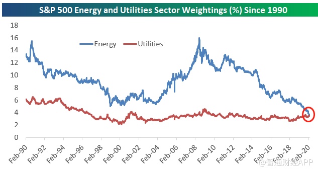 而如今,能源板块在标普500指数的权重基本没有变化。此外,在本周,公共事业板块在标普500指数中的权重超过了能源板块,为近30年以来首次。