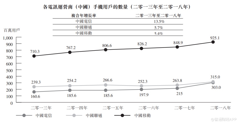 根据弗若斯特沙利文报告,中国的移动运营商网络由三大运营商主导,其中,中移互联网的控股公司用户由2013年的7.1亿名增加至2018年的9.25亿名,复合年增长率为6.8%。九尊数字互娱认为,与中移互联网合作有利于公司拓展现有的市场份额,为公司提供客户来源。