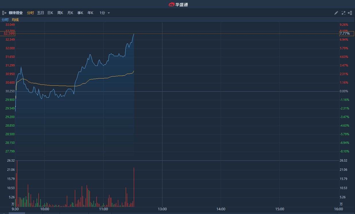 智通财经APP获悉,据报道,中国太保(02601)近日携手四家子公司通过港股通合计买入赣锋锂业(01772)240.52万股,耗资约7535万港元。本次举牌后,公司及控股子公司共持有赣锋锂业1032.24万股,占已发行H股股票的5.16%。截至发稿,赣锋锂业涨7.6%,报32.55港元,成交额1.24亿港元。