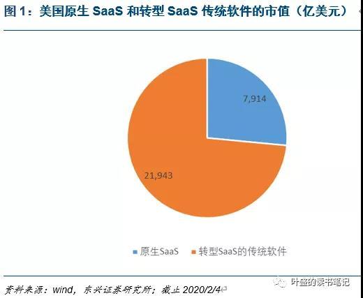 截止2020年2月4日,美国上市的SaaS公司中,原生SaaS公司总市值为7914亿美元,转型SaaS的传统软件巨头总市值为21943亿美元。从SaaS公司目前的市值分布中也可以看出,虽然原生SaaS发展良好,但是软件巨头也纷纷转型成功。这正好说明了SaaS是软件产业的一场时代变革,而非革命。