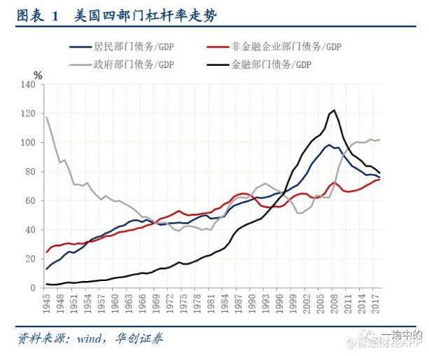 美国经济数据浩如烟海,全部说一遍等于什么都没说,重点是抓出核心看大势。从居民、企业、金融、政府四部门来看,2008年以来,美国居民、金融部门的去杠杆都是明显有效的。企业部门杠杆刚刚突破2008年高点,只有政府部门杠杆在极度高位。但由于美元霸权,美国具有将其国债进行全球货币化的能力和基础,理论上讲,发生美国公共债务危机的可能性极低。因此,相比2008年,这次即便出风险,可能性主要集中在企业部门。