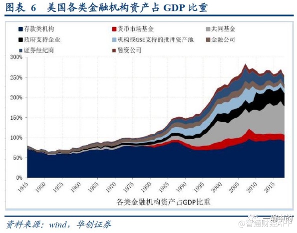 对于金融部门而言,整体杠杆回落明显,且银行、货币基金、抵押资产池、证券经纪商等都是相对GDP增速回落的,仅有共同基金规模大幅扩张,占到金融部门资产总量的三分之一左右。因此结合居民部门的健康情况,我们可知,“居民杠杆爆掉→地产暴跌→抵押缩水→银行破产”链条的风险系数较低,共同基金的交易波动更加值得关注。