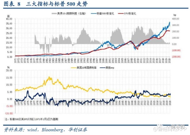 综上,我们可以知道,2018年、2019年初两次暴跌更类似于纯粹的大类资产配置调整,我们看到的是指标背景是美股小幅超涨盈利同时美债利率上行,ERP快速回落,但10y-2y期限溢价维持30-80bp正区间,对经济虽有下行担心但距离衰退危机尚远。