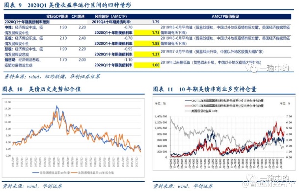 从基本面定价模型看,有破1%的可能。我们可以做一个大概的情形预判,以美债三因素模型(GDP增速替代实际利率、CPI替代通胀预期、AMCTP替代风险偏好)为分析框架,我们假设了乐观、中性、悲观、最悲观四种情形,测算了2020Q1可能的美债收益率运行区间。可以看到,美国一季度GDP增速掉至1.7%-1.9%,CPI在2.0-2.2%,风险偏好没有进一步恶化维持现在位置,那么美债收益率的基本面定价中枢应当在1%-1.4%区间,如果考虑经济冲击和风险偏好进一步恶化,存在破1%的可能性。