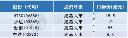 该行预期未来信贷环境会较2016-17年宽松,而固定资产投资增速将会由2019年的4%加速至今年的6%。该行认为,信贷扩张结合刺激政策,可以在波动环境下继续支持股票市场,首选股份包括华泰证券(06886) 、永达(03669) 、融创(01918) 和中铁(00390) ,给予“跑赢大市”评级,目标价分别为15.5元、10元、55元、8.8元。