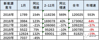 20年1月新能源客车的表现相对平稳,虽然较19年1月下降45%,但总体较好。