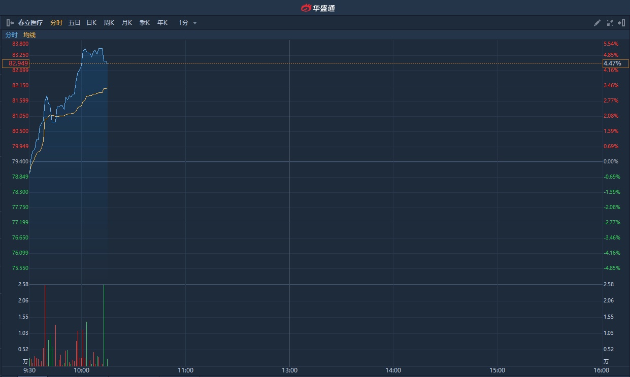 智通财经APP获悉,春立医疗(01858)发布公告,公司预计截至2019年营业收入将较去年同期取得超过65%的大幅增长,利润较去年同期取得超过95%的大幅增长。该股早盘获资金追捧,盘中高见83.6港元,刷新历史新高。截至发稿,涨4.6%,报83.05港元,成交额1622.81万港元。