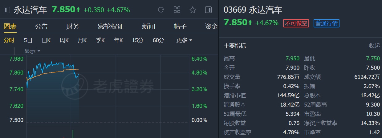 智通财经APP获悉,瑞信发布报告称,上调永达汽车(03669)目标价一成,由10港元调高至11港元,维持“跑赢大市”评级。