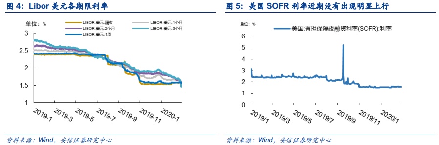 近期部分流动性指标并没有显示太大异常。最新2月28日的黄金租赁利率并没有显示出明显的上升。而且如果流动性问题确实很严重,我们应该会在货币市场,尤其是有担保隔夜融资利率(SOFR)上看到端倪,毕竟2008年金融危机的时候Libor的上行是极为明显的。但最新的Libor 美元及有担保隔夜融资利率SOFR(美联储用来Libor的指标)并没有显示出相关的异常。