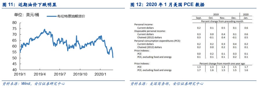 原油价格下跌及需求预期下行引发通缩担忧。我们一直强调,实际利率是分析黄金最有利最简洁的框架,实际利率=名义利率-通胀预期,理论上在名义利率不变的情况下,通胀预期的下行会带来实际利率的上升,从而对金价形成压力。近期全球经济预期走弱,油价暴跌,再加上周五美国1月核心PCE物价指数环比微増0.1%,略弱于预期,引发了投资者对通胀走弱甚至通缩的担心。