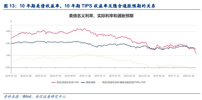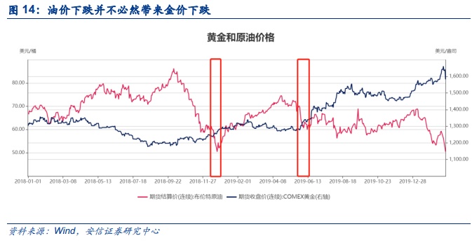 但通缩的逻辑在解释金价的时候需要特别注意。至少有两点值得注意,一是目前市场是否真到了谈论通缩的时候,事件对经济的影响严重到了什么程度,目前来下定论太早。二是即使是通胀下行又是否必然带来金价的下跌。从前两年经验看,原油大跌导致通胀预期下行的同时名义利率调整更快,典型就是2018年年底和2019年5月底。不过目前市场确实有所变化,这也是我们后面会重点探讨的问题。
