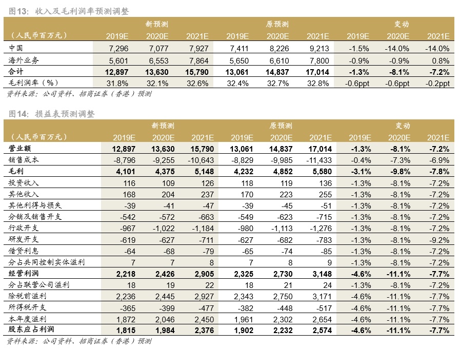 下调公司2019E-21E净利润预测4%/11%/7%,主要反映国内车市下行压力加大的负面影响。下调目标价11%至34.8港元(前次为39.2港元),相当于18xFY20EP/E(估值倍数维持)。尽管公司短期业绩受冲击,但轻量化业务代表产业升级方向,是影响公司未来几年盈利及估值的最大因素,公司在新能源汽车零部件的竞争优势已获验证并不断增强。维持买入评级,预计上半年公司业绩受行业波动影响大,下半年环比改善,明年恢复高增长,故上半年基本面及情绪面的低谷期是长线吸纳机会。