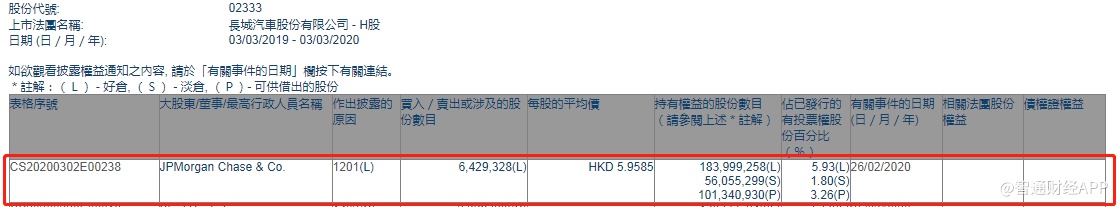 智通财经APP获悉,联交所最新资料显示,2月26日,摩根大通减持长城汽车(02333)约642.93万股,每股作价5.9585港元,涉及总金额约为3830.90万港元。减持后最新持股数目约为1.84亿股,最新持股比例5.93%。