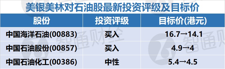 二、美银美林对石油股最新投资评级及目标价