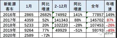 2020年1月新能源专用车2589台的走势相对较差,但2019年1月的新能源专用车的销量0.9万台,同比增速77%,今年新能源专用车处于历史低位。