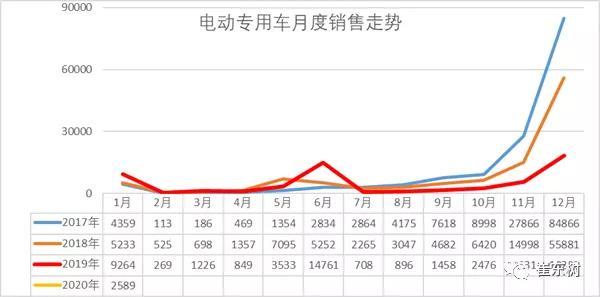 专用车的年初一般较低,但2019年1月的销量特别高。随后的3月和6月的表现也很强,7-11月的走势逐步回落。