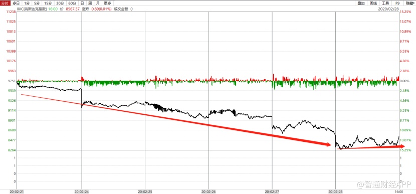 上周,由于疫情在意大利、韩国、日本三地开始爆发,整个外围股市都笼罩在突发的全球流行的阴霾当中,市场情绪极度悲观, 纳指在有如水银泻地的一通暴跌后,周五开始站稳。