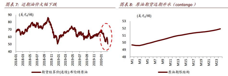 受需求疲弱影响,近期原油价格快速下跌(布伦特原油期货收报于 50.52 美元/桶,较年初下跌 24%),接近 2018 年底以来低点,且期货出现远期升水,我们认为海上储油的套利或投机性需求将增加,这有望成为具有持续性的驱动因素:根据 Clarksons 的统计,目前全球共有 57 艘 VLCC 处于储油状态,占全部运力的 7%,我们将持续跟踪。