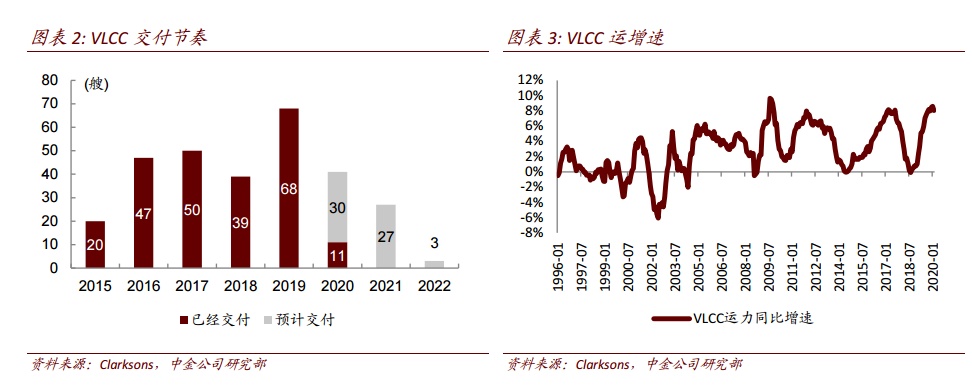 2.2%。 供给端新船交付逐年减少(2019 年交付 68 条 VLCC, Clarksons 预计 2020 和 2021 年为 41 条和