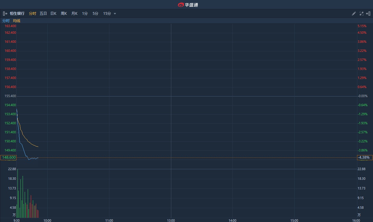 智通财经APP获悉,花旗表示,美联储降息给香港银行业盈利带来新阻力,对该行业前景判断更加谨慎,该行下调恒生银行(00011)为“卖出”评级。受此影响,恒生银行盘初急挫逾4%,创近两年半新低。截至发稿,跌4.38%,报148.6港元,成交额2.97亿港元。