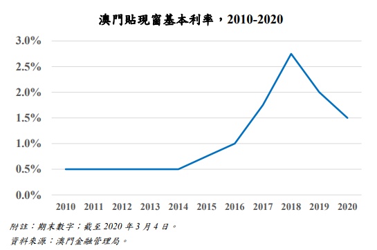 智通财经APP获悉,澳门金融管理局今天(2020年3月4日)下调基准利率50个基点至1.50%。