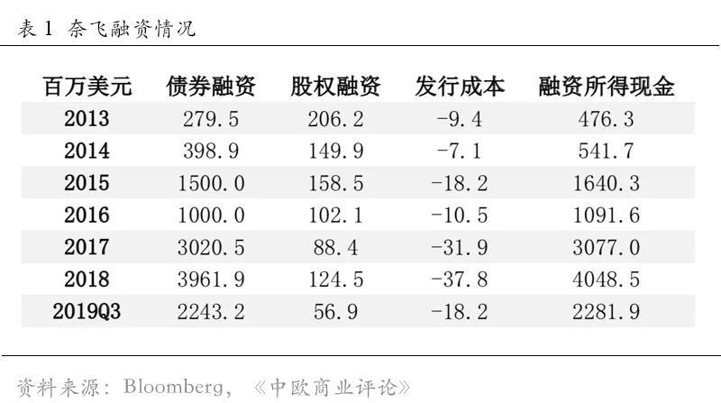 答案其实很简单。虽然自有造血功能不够,即净利润不够,但是奈飞可以从外界“借血”。根据Bloomberg数据,为了填补资金的缺口,奈飞在近几年持续举债,融资所得现金从2012年的560万美元增长到了2019年前三季度的22.82亿美元,在这其中,大部分融资都是来自于债券融资。这也解释了为什么奈飞每年都有盈利,但是自2010年以来,公司从来都不分红的原因,因为实在钱不够。