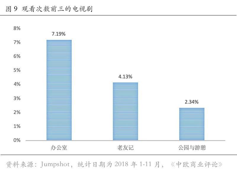 根据Jumpshot数据显示,奈飞网页端观看的内容前三名分别为《老友记》、《办公室》和《公园与游憩》,累计贡献了超过10%的观看次数,但这三部剧皆属于外购内容,排名第三的《公园与游憩》也将步另外两部剧集的后尘,在2020年从奈飞撤出,收归于NBC环球。
