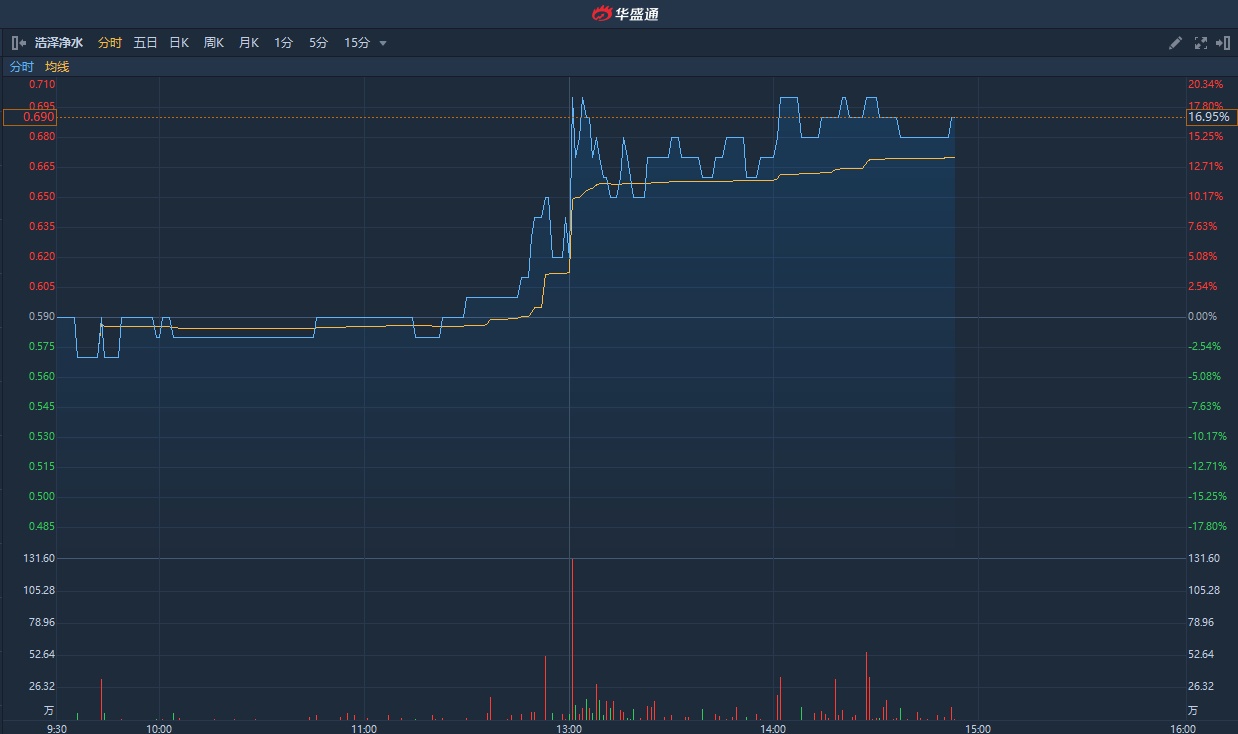智通财经APP获悉,浩泽净水(02014)午间公布,集团已累计向全国百余家医院定向捐赠数千台净水机及空气净化器,其中包括位于疫情重点区域的武汉雷神山医院、火神山医院。集团在疫情期间紧急开辟防护口罩生产专线和推出新一代医疗级空净杀菌设备即一体化防御消毒等产品。午后该股获资金爆炒,截至发稿,涨15.25%,报0.68港元,成交额560.47万港元。