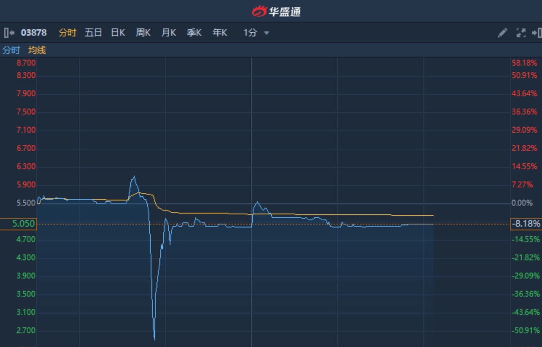 智通财经APP获悉,VICON HOLDINGS(03878)盘中曾现“V型”走势,振幅达71.64%,截至15时06分,跌8.18%,报价5.05港元,成交额7707万。