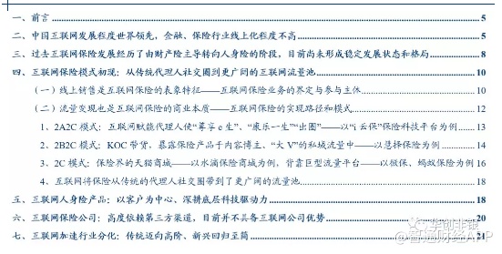 本系列报告试图从电商等传统互联网行业的角度去看保险行业,探讨互联网保险赛道上的方方面面,从提供产品服务的保险公司到销售环节不可或缺的中介公司,也会涉及传统保险产品与互联网保险产品特征、传统渠道与互联网渠道颠覆进阶、行业监管政策等,最后落脚于互联网保险赛道以及具体参与主体的发展与空间。我们试图探讨的问题涉及以下几个方面:
