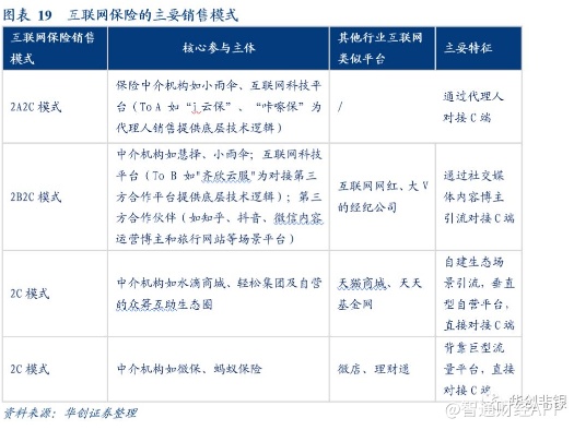 2C模式是保险中介机构直接对接C端消费者销售保险的模式,目前主要有以水滴保险为例的垂直型销售平台和背靠巨型流量综合平台的微保、蚂蚁保险等两种中介机构模式。