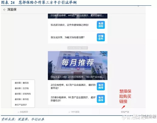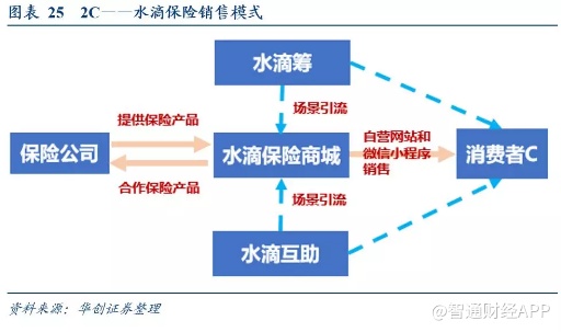 3、2C模式:保险界的天猫商城——以水滴保险商城为例,背靠巨型流量平台——以微保、蚂蚁保险为例