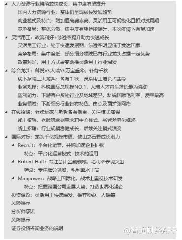 第一,行业政策持续利好,带来灵活用工等子板块持续较快成长机遇。