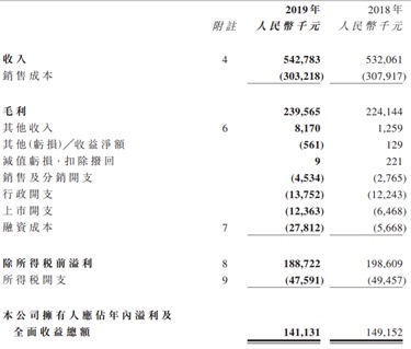 费用全面增长,使得净利润最终录得同比下滑。智通财经APP了解到,公司销售及分销开支、行政开支、上市开支和融资成本,分别同比增长64%、12.3%、91.1%、390.7%至453.4万元、1375.2万元、1236.3万元、2781.2万元,使得公司税前利润同比下滑5%至1.89亿元,扣除所得税后的股东应占净利润同比下滑5.4%至1.41亿元。