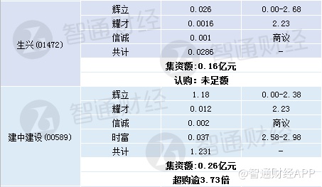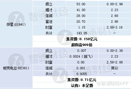 其中、九尊数字超购逾2.8倍、建中建设超购逾3.73倍、烨星超购逾909倍。煜盛文化、生兴、蚬壳电业认购未足额。