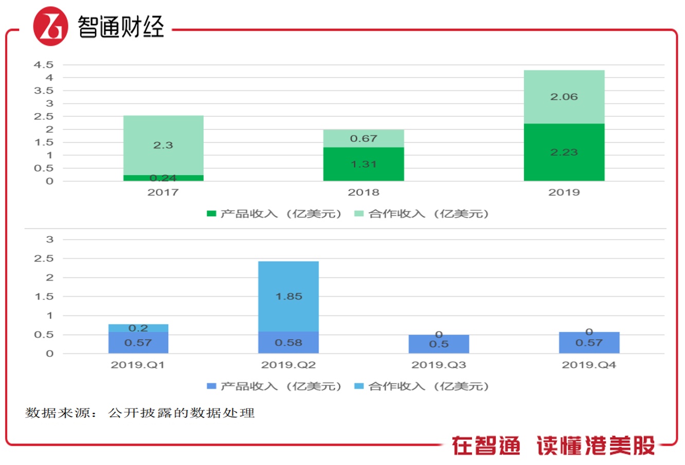 产品板块高速成长,不过合作收入波动却比较大。2018年合作收入大幅度下降,主要为2017年有2亿多美元的授权收入,而2018年没有,2019年合作收入同比大幅度提升,主要为Q2增加所致,与新基公司(属于百时美施贵宝)就终止百泽安合作协议获得的1.5亿美元,因此后两季度均无合作收入。