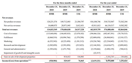 这意味着,若撇去上述非经常性损益项,2019Q4京东的经调整净利润则为亏损8.28亿,2018Q4这一数字为亏损8.53亿元,虽然物业出售确实给京东带来了实质性收益,但是如果在持续性经营盈利方面,京东可能并没有带来实质性的奇迹。