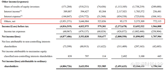 另外,增厚利润的主要原因是两项非经常性损益。2019Q4,京东物业出售获得收益8.14亿元,而2018年同期则为0;2019Q4其他项收益净额为36.5亿元,2018年同期则为亏损39.5亿元。业绩报显示,这部分营业外收入主要是长期投资的公允价值变动,2019Q4为收入42亿元,2018年则为亏损40亿元。
