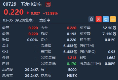 智通财经APP获悉,五龙电动车(00729)公告,于2020年3月4日根据供股配发及发行股份5.55亿股,占已发行股份28.48%,每股发行价0.20港元,较上营业日收市价溢价3.63%。该股今日复牌,早盘高开13.99%,报0.22港元,成交额7.15万港元。